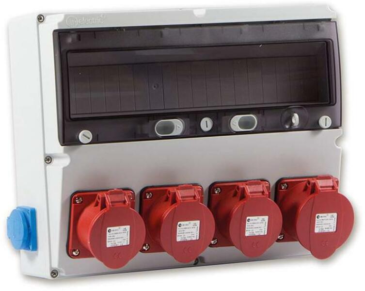 TP ELECTRIC Szerelt ipari doboz 360×300mm 18modul(5×16A-IP44)×3+(5×32A-IP44)×1 +(1×16A)×2 (TP-3323-002-5371) Termékinformáció: Anyaga: műanyag Méret: 360 x 300 mm Előlapon: 3 x ( 5P16A ) beépíthető dugalj + 1 x ( 5P32A ) beépíthető dugalj Oldallapon: 2 x ( 2P+F ) háztartási dugalj Modulok száma: 18 db IP védettség: IP44 Kiszerelési egység: 3 db / karton