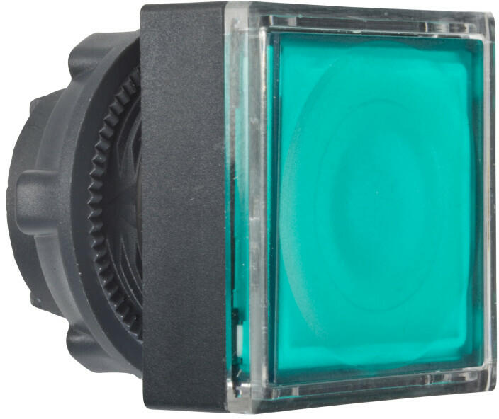 Harmony műanyag négyszög alakú világító nyomógomb fej, Ø22, visszatérő, LED modulhoz, betehető címke, zöld Schneider ZB5CW333 Harmony műanyag négyszög alakú világító nyomógomb fej, Ø22, visszatérő, LED modulhoz, betehető címke, zöld