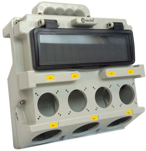 TP ELECTRIC 280x260 Hordozható ipari doboz szerelt (2db kicsi és 1db nagy vakfedéllel) (TP-3370-000-0000) Termékinformáció: Anyaga: ABS Méret: 280 x 260 mm Vakfedél. 2db kicsi, 1db nagy Előlapon 4 db férőhely háztartási dugaljakhoz Alsólapon: 3 db férőhely 75x75 mm- es dugaljakhoz IP védettség: IP44 Modulok száma: 12 M25 és M32 tömszelence csatlakozás Mobil használatra alkal