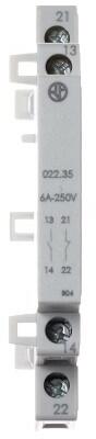 Segédérintkező, oldalról rácsatlakoztatható a 22.32/34-es típusú mágneskapcsolókra, 1 záróérintkező + 1 nyitóérintkező 6 A, érintkezőanyag AgNi, a mágneskapcsoló mechanikusan vezérli Segédérintkező, 1 záróérintkező + 1 nyitóérintkező, 6 A, oldalról rácsatlakoztatható a 22.32/34-es típusú mágneskapcsolókra