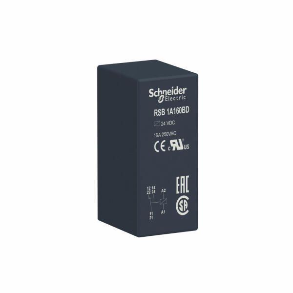 Harmony RSB interfész relé, 1CO, 16A, 24VDC Schneider RSB1A160BD Zelio RSB interfész relé, 1CO, 16A, 24VDC