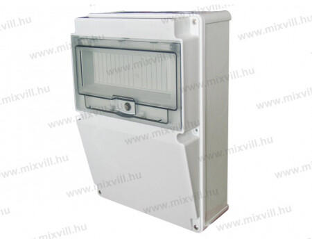 - 10 modulos - Méret: 290x190x120mm - Din sínnel, csapófedéllel - Anyaga: thermoplast - IP66 - Kihúzható fülek segítségével rögzíthető.