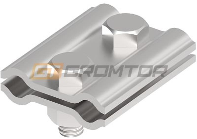 GROMTOR Párhuzamos összekötő, rozsdamentes acél V2A, d=8-10 mm, 50x40mm (104113) Terméki nformáció: Párhuz amos összekötő Anyaga: rozsdamentes acél (V2A) Méret: 50 x 40 mm Köracél keresztmetszete: 8-10 mm Csavar típusa: M8x20 (2 db) A PN-EN 62561 szabványnak megfelelően Megfelel a PN-EN 62305 szabvány követelményeinek