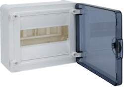 HAGER Golf kiselosztó, 1 soros, 8M, falon kívüli, átlátszó ajtó, 184x210x99mm (VS108TD) Termék információ: IP védettség: Beltérben IP40; kültérben IP30 IK07; szigetelési osztály: II szín: RAL9010 fehér szerelhetőség 63A/400V 50Hz vezeték melegedési teszt: 650 °C szabványok: minden termék megfelel az IEC 60439-3 szabványnak és az RoHS valamint a WEEE előírásoknak 1 x