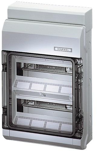 HENSEL Mi 9301 Mi üres elosztószekrény zsanéros szürke fedéllel (20001050) Termé kinformáció: Beé pítési méretek: szélesség 275 x magasság 425 x mélység 150 mm Max. beépítési mélység: beépített szerelőlap esetén 146 mm, beépített kalapsínnél 135 mm 3-as szekrényméret Külön kell megrendelni a kalapsíneket, szerelőlapokat, takarólapokat 3 oldalról kombinálhat