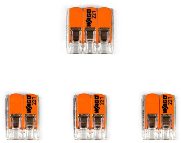 Kiegészítő készlet minirózsa bekötéséhez kapcsolóval. A készlet három 2 pólusú átlátszó univerzális csatlakozót és egy 3 pólusú unverzális kapcsot tartalmaz. Az átlátszó tartály lehetővé teszi, hogy tisztán lássa, hogy a vezetékek megfelelően vannak-e csatlakoztatva, és a megfelelő hosszúságúra vannak-e lecsupaszítva. . Alkalmas 0,2 és 4 mm2 közötti átmér