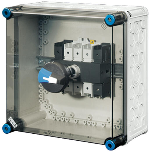 HENSEL Mi 7214 Mi terheléskapcsoló szekrény (20001130) Termé kinformáció: Terh eléskapcsoló 100 A 4 pólusú, PE + N Csatlakoztatás: 10–35 mm2 Cu, vagy Mi VS 100 PE kapocs rézvezetékekhez Fedélzárás szerszámmal Zárható kapcsolókar A DIN EN 60947-3 szerinti terhelésszakaszolóval Alapany ag: PC (polikarbonát) Érintésvédel mi osztály: II Színárnyalat: szürke, RAL 7035 M