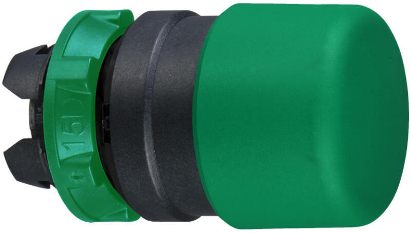 Harmony műanyag Ø30 gombafejű nyomógomb fej, Ø22, visszatérő, zöld Schneider ZB5AC34 Harmony műanyag Ø30 gombafejű nyomógomb fej, Ø22, visszatérő, zöld