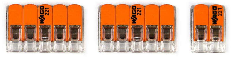 Kiegészítőkészlet négylyukú mennyezeti rózsakábelezéshez. A készlet két5 pólusú átlátszó univerzális csatlakozót és egy2 pólusú átlátszó univerzális csatlakozót tartalmaz. Az átlátszó tartály lehetővé teszi, hogy jól látható, hogy a vezetékek megfelelően vannak-e csatlakoztatva, és megfelelő hosszúságúak-e. 0,2 és 4 mm2 közötti keresztmetszetű merev va