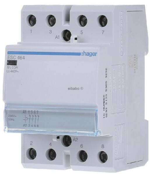 HAGER Mágneskapcsoló, 4NY, 63A, 230V AC, moduláris (ESC464)