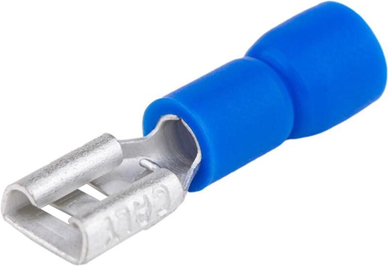 Kivitel: hüvely csatlakozóhoz Rögzítő kapoccsal: Igen Csatlakozóméretek: lapos 2,8x0,5 mm Névleges keresztmetszet: 1,5 -4 mm2 Szigetelés: részlegesen szigetelt Szigetelés színe: kék Szigetelés anyaga: PVC Anyag: réz Maximális áram (Imax): 32 A