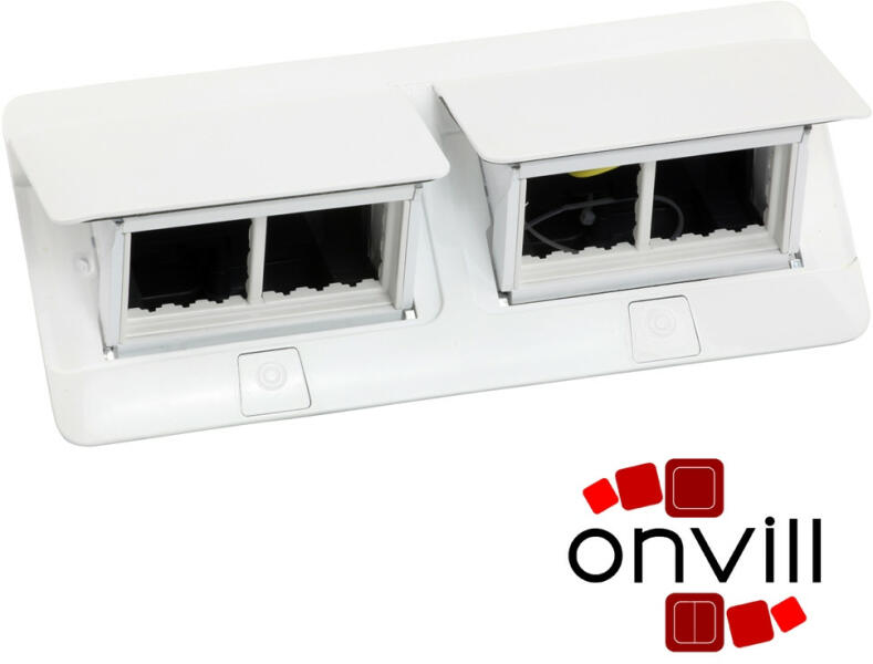 Felnyíló süllyesztett doboz, üres Közvetlenül beépíthető bútorlapba (asztal, irodai tárgyalóasztal, konyhapult, stb) Megfelel az IEC 60884-1 és NFC 61-314 szabványoknak. Álpadlóba illetve betonba nem szerelhető, a régebbi beszerelő és sülyesztő dobozokkal nem kompatibilis! Pop-Up doboz 8 (2x4) modulos Vékonyított kialakításának köszönhetően tökéletesen illeszkedik b