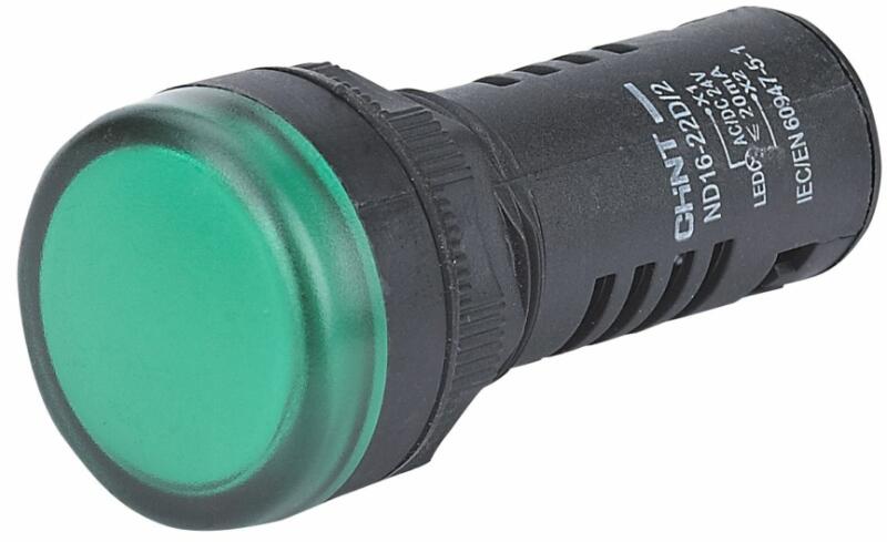 CHINT LED jelzőlámpa zöld 230V AC (ND16-22C/2) Term ékinformáció: LE D jelzőlámpa Furat: 22mm Feszültség: 230V AC Fej színe: zöld