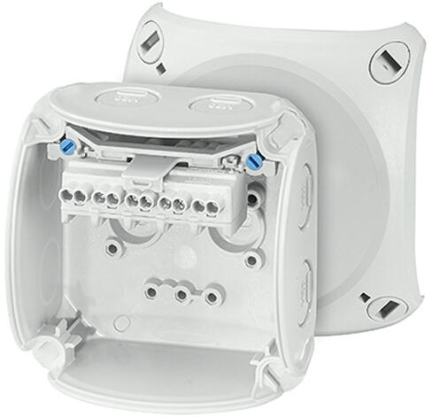 HENSEL KF 0202 G Időjárásálló kábelösszekötő doboz, szürke (62000043) Termé kinformáció: 0,75 –2,5 mm2, Cu, 3~ Kapcsokkal, pólusonként 2 db csatlakozással 5 pólusú, pólusonként 8 x 0,75-1 mm2 r / f, 6 x 1,5 mm2 r / f, 4 x 2,5 mm2 r / f, 2 x 4 mm2 r / f Kábelbevezetés kikönnyítéseken keresztül, AKM-et külön kell rendelni „Időjárásálló, ellenáll az időjárás o