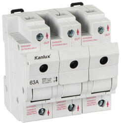 KANLUX KSF02-63-3P biztosítós szakaszoló kapcsoló, 400 AC (23343) Termékin formáció: A KSF biztosítós szakaszoló kapcsoló lehetővé teszi a D02 biztosíték rendszerben működő elektromos berendezéseket védő biztosítékbetét cseréjét. Műszaki adatok: Névleges feszültség: 400V/AC Szabvány: PN-EN 6047-3 Méret: 90 x 83 x 72 mm Súly: 420 g