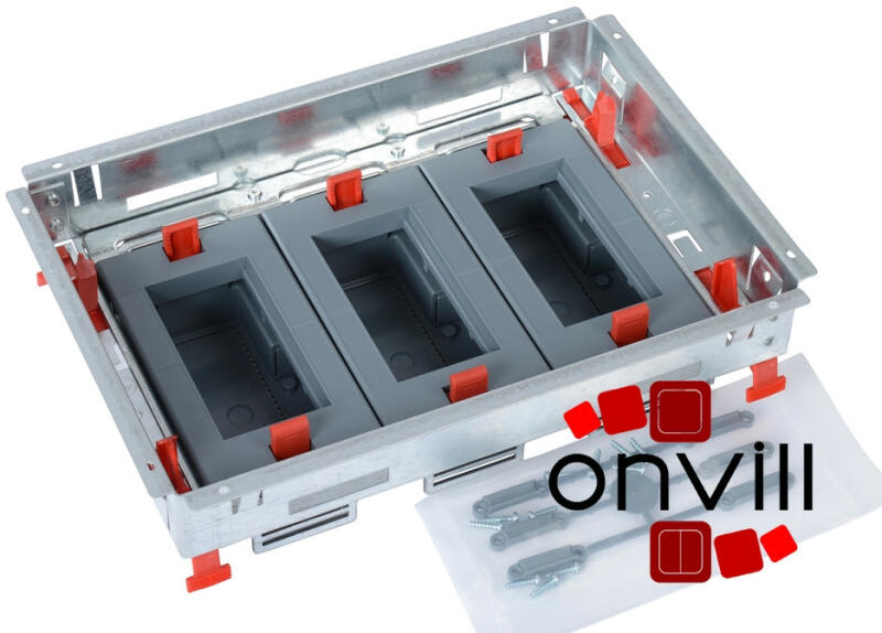 Standard padlódoboz Megfelel az IEC/EN 60670-23 szabványnak Szerelvények vízszintes elhelyezésére Program Mosaic szerelvényekkel szerelhető Állítható magasságú Közvetlenül beszerelhető álpadlóba Betonpadlóba szereléshez süllyesztődoboz (kat. szám: 0 880 90/91/92 vagy 0 880 80) valamint fém keret (kat. szám: 0 880 81/82/83) használata ajánlott 12 (3 x 4) modulos