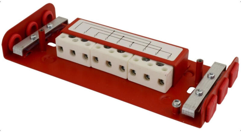 tűzálló kötődoboz, 190 x 80 x 30 mm, IP20, tűzálló fém, tűzjelző rendszerekhez, sorkapocs, tűzálló, piros