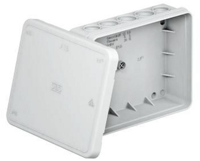 Forma: négyzetes Szerelési mód: fali/mennyezeti szerelés Hosszúság: 150 mm Sorolható: Nem Bevezetések száma: 6 Szekrényátvezetés típusa: kikönnyített Anyag: műanyag Fedélrögzítés: csavaros Plombálható: Nem Névleges szigetelőfeszültség Ui: 660 V Időjárásálló: Igen