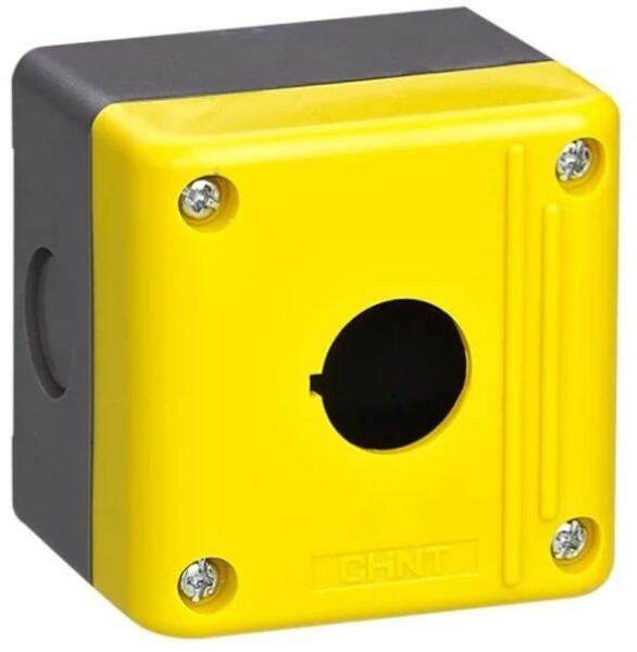 CHINT kapcsoló tokozat 1-es / sárga (CH-NPH1-10J) Ter mékinformáció: Ka pcsoló tokozat, sárga Az érintkezőket a tokozat aljához lehet rögzíteni Méret: 75x75 x 61 mm Furat méret: 22 mm Furat száma: 1 Anyaga: műanyag