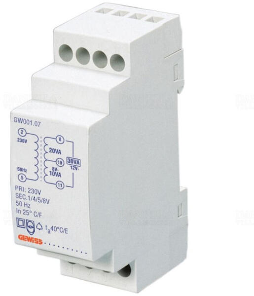 GEWISS CSENGŐTRANSZFORMÁTOR 5VA 230/4+8=12V 2 M (GW96421)
