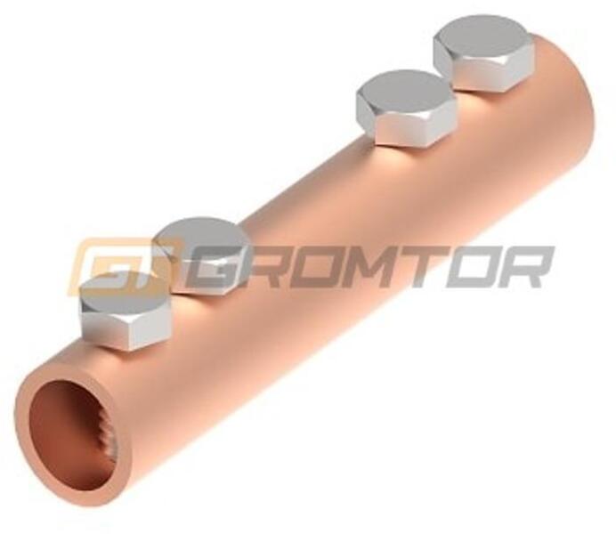 GROMTOR Összekötő kapocs d=8-10 mm, köracélokhoz, réz ( Cu ), 100mm, (105114) Terméki nformáció: Összek ötő kapocs köracélokhoz Anyaga: réz (Cu) Méret: 100 mm Köracél keresztmetszete: 8-10 mm Csavar típusa: M6x10 (4 db) Alkalmazás: köracél csatlakozás