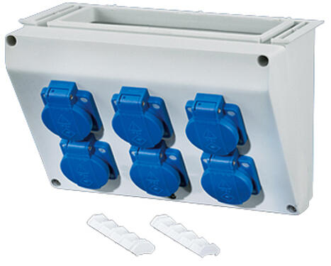 HENSEL FP CB 218 Csatlakozódoboz (68000142) Termé kinformáció: Csat lakozódoboz 6 x 16 A, 2 pólusú, + PE, 230 V 2-es méretű (270 mm) szekrényoldalhoz csatlakoztatható Zsanéros beépítési felület Süllyesztett védőérintkezős csatlakozó aljzatok rugós összekötő kapcsokkal, leágazáshoz Alsó felszereléshez Oldalsó felszereléshez a dugaszoló aljzatok 90°-kal elfordíthat