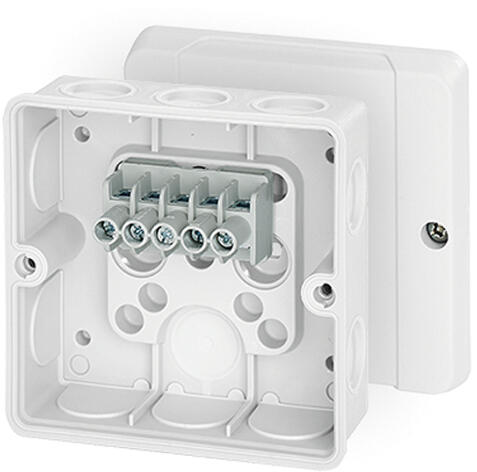 HENSEL DE 9346 Kábelösszekötő doboz (62000272) Termé kinformáció: 1,5 4 mm2, Cu, 3~ Kapcsokkal 5 pólusú, pólusonként 6 x 1,5 mm2 sol, 4 x 2,5 mm2 sol, 3 x 4 mm2 sol, 2 x 6 mm2 sol 11 db rugalmas, zárt tömítő membrán, tömítési tartomány Ø 6–18 mm 1 db kábelbevezetési lehetőség a doboz alján, tömítési tartomány Ø 6–18 mm 2 db húzásmentesítővel kábelkötegelők