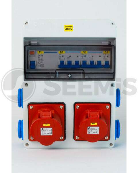 3320-as szerelt ipari doboz installációval állvánnyal, vezetékelve - Anyaga: műanyag - Méret: 220 x 300 mm - Előlapon: 1 x (5P16A) dugalj - Előlapon: 1 x (5P32A) dugalj - Oldalsó lapon: 4 x ( 2P+F) háztartási dugalj - Installáció: 4 x (1PC16A) kismegszakító - Installáció: 1 x (3PC16A) kismegszakító - Installáció: 1 x (3PC32A) kismegszakító - Érintésvédelmi osztály: II.