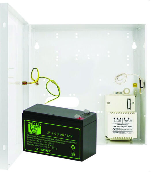 szerelt központdoboz, 285 x 295 x 88 mm mm, IP20, fém, Paradox rendszerekhez, transzformátor, előre fúrt lyukak, tamper, fehér