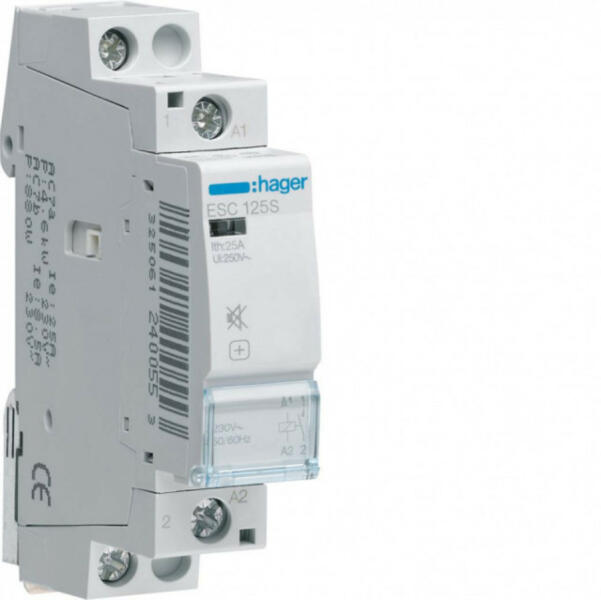 HAGER Csendes mágneskapcsoló, 1Z, 25A, 230V AC, moduláris (ESC125S)