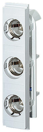 HENSEL Mi RS 33 Sínre húzható biztosítóaljzat, DIII, Diazed (2000683) Termék információ: Sínr e húzható biztosítóaljzat 63 A, 3 pólusú Cserélhető kiegészítő, Mi-biztosító szekrényekhez DIII biztosítóaljzat, E 33, illesztőgyűrűs rendszer Érintésvédelemmel Kapocstartomány: tömör, rugalmas vagy hajlékony (sol/s/f) 1,5–35 mm2 Anyaga: Cu Szélesség: 57 mm
