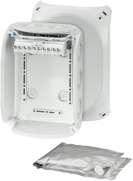 HENSEL WP 1006 G Vízálló kábelösszekötő doboz kiöntőmasszával, szürke (62000107) Termé kinformáció: 1,5 6 mm2, Cu 3~ Kapcsokkal 5 pólusú, pólusonként 6 x 1,5 mm2 r / f, 4 x 2,5 mm2 r / f, 4 x 4 mm2 r / f, 4 x 6 mm2 r / f, 2 x 10 mm2 r / f Kábelbevezetés kikönnyítéseken keresztül, AKM-et külön kell rendelni Kábelösszekötődobo z kiöntőmasszához Földfelszí n alatti