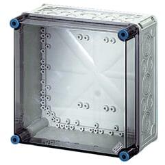 Mi 70200 üres szekrény. átlátszó fedéllel Fedélzárás szerszámmal külön kell megrendelni a tartósíneket, szerelőlapokat, takarólapokat beépítési szélesség 275 mm beépítési magasság 275 mm max. beépítési mélység beépített szerelőlappal 146 mm max. beépítési mélység beépített tartósínnel 135 mm Védettség: IP 65 érintésvédelmi osztály: II Alapanyag: term