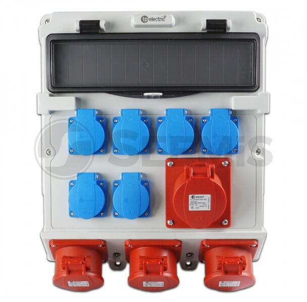 - Szerelt ipari doboz - Anyaga: ABS - Méret: 300 x 340 mm - Előlapon: 6 x (1x16A) háztartási dugalj + 1 x (5x32A) beépíthető ferde aljzat - Alsólapon: 3 x (5x32A) beépíthető aljzat - IP védettség: IP44 - Modulok száma: 14 - Szerelt ipari doboz - Anyaga: ABS - Méret: 300 x 340 mm - Előlapon: 6 x (1x16A) háztartási dugalj + 1 x (5x32A) beépíthető ferde aljzat - Alsólapon: 3 x (
