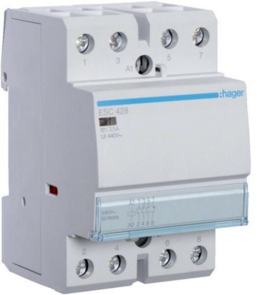 HAGER Mágneskapcsoló, 3Z+1NY, 25A, 230V AC, moduláris (ESC428)