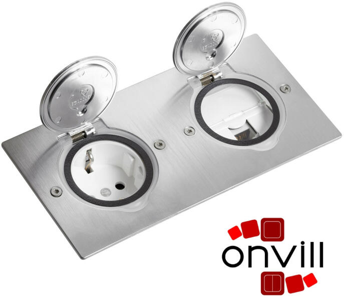Mini padlódoboz csatlakozóaljzatokhoz IP44 - IK08 180°-ban nyíló fedéllel Extra lapos kivitelezés: vastagsága 2 mm Fehér fényű LED-del megvilágítható Program Mosaic funkciókkal szerelvényezhető (2 modul) 2P+F csatlakozóaljzat dupla USB töltők RJ 11 és RJ 12 csatlakozók TV csatlakozók RJ 45 csatlakozók: UTP, FTP vagy STP ellenőrzött hozzáférés nélkül hangszóró csatl