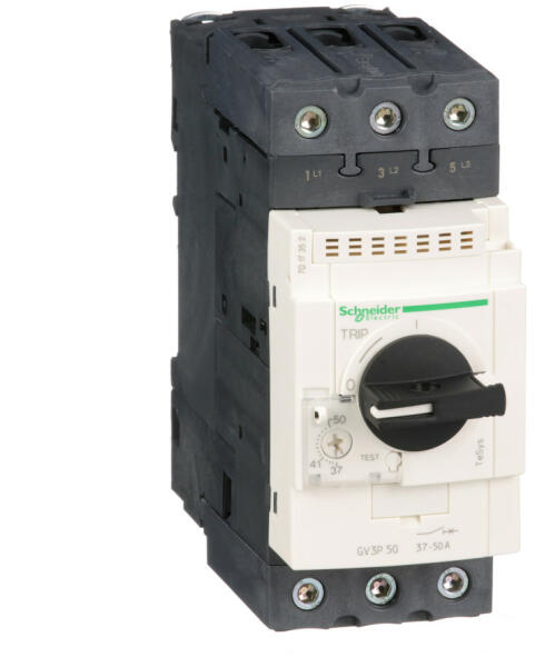 TeSys GV3 Termikus-mágneses motorvédõ megszakítók 0,37 … 30 kW-ig Kisméretű termikus-mágneses motorvédõ megszakítók 0,37 … 30 kW-ig Jellemzők Az 55 mm-es szabványos szélességnek és DIN-sínre szerelésnek köszönhetően egyszerűen beépíthető az összes konfigurációba. GV3 P termikus-mágneses megszakító: 7 tartomány 9 és 65 A között mágneses és termikus motorvé