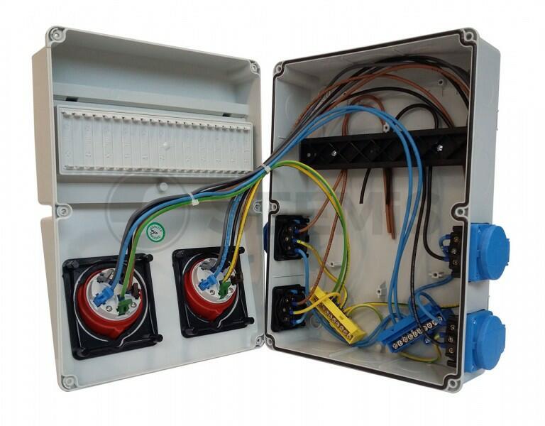 - Vezetékezett ipari doboz - Anyaga: műanyag - Méret: 220 x 300 mm - 2x(5P16A) + 4x(2P+F) - Előlapra szerelt: 2 x ( 5P16A ) beépíthető dugalj - Oldalsó lapra szerelt: 4 x ( 2P + F ) háztartási dugalj - IP védettség:IP 44 - Modulok száma: 11 db - Vezetékek keresztmetszete: 1 x 2,5 mm2 - Névleges feszültség: 400V - UV sugárzásnak ellenálló műanyag - Vezetékezett ipari doboz -