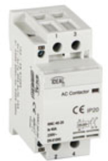 KANLUX KMC-40-20 kontaktor, 230V AC 50/60Hz (23253) Termékin formáció: Kapcsolók villamos fogyasztók automatikus bekapcsolására. Alkalmazási kategóriák: AC7a, AC7b. Műszaki adatok: Névleges feszültség: 230V/AC Tekercsfeszültség: 230V/AC 50/60Hz Névleges frekvencia: 50Hz Névleges teljesítmény AC-7A/230: 8,5kW Névleges teljesítmény AC-7B/230: 2,5kW Névleges áram I(N) AC-7B/A