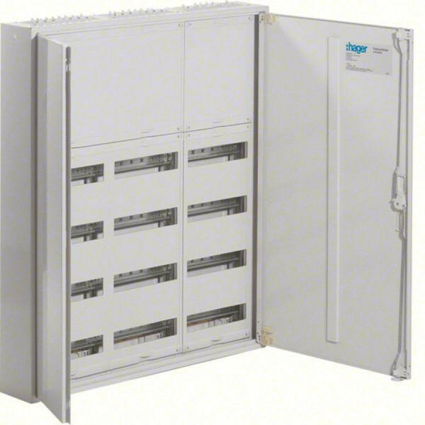 HAGER Univers mezős elosztó, falon kívüli, 300-mm-es felső sorkapocstakarással, maszkolt, IP44, 144M, N+PE, II. év. oszt. , 950x800x161mm (FWB63N)