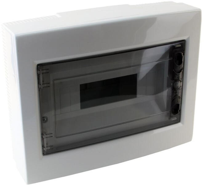 Kiselosztó falonkívüli 1 soros, 12 modulos füstszínű ajtóval IP40 sín nélkül, sík ajtóval EDFKS-12/1 Tracon