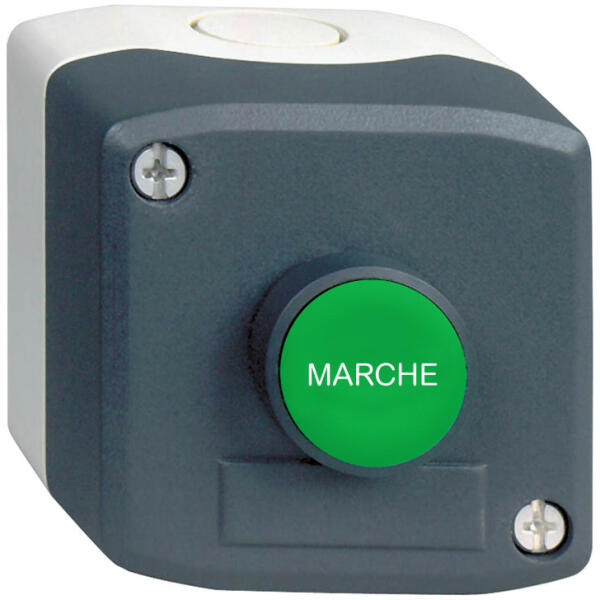 Harmony XALD tokozott nyomógomb, 1NO zöld nyomógomb, "Marche" felirat Schneider XALD104 Harmony XALD tokozott nyomógomb, 1NO zöld nyomógomb, "Marche" felirat