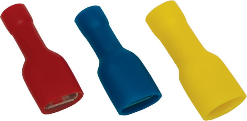 Kivitel: hüvely csatlakozóhoz Rögzítő kapoccsal: Igen Csatlakozóméretek: lapos 6,3x0,8 mm Névleges keresztmetszet: 1,5 -4 mm2 Szigetelés: teljesen szigetelt Szigetelés színe: kék Szigetelés anyaga: PVC Anyag: réz Maximális áram (Imax): 32 A