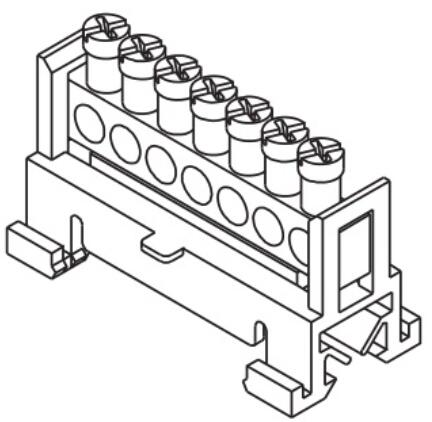 Sorkapocssín 63A zöld 1P csavaros 7csatl. /16mm2 kalapsínre N/PE7 Pollmann