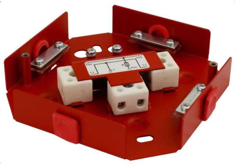 tűzálló kötődoboz, 120 x 120 x 37 mm, IP20, tűzálló fém, tűzjelző rendszerekhez, sorkapocs, biztosíték, tűzálló, piros