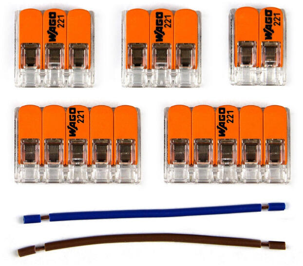 Kiegészítőkészlet ötlyukú mennyezeti rózsakábelezéshez. A készlet tartalma: - 2 db 5 pólusú átlátszó univerzális csatlakozó - 2 db 3 pólusú átlátszó univerzális csatlakozó - 1 db 2 pólusú átlátszó univerzális kivezetés - 2 db egypólusú kábelszakasz összekötő híd használható. Az átlátszó tartályként lehetővé teszi, hogy jól látható legyen, hogy a ve
