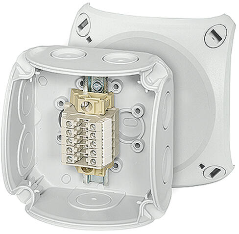 HENSEL RK 0205 T Kábelösszekötő doboz (62000172) Termé kinformáció: 0,5- 4 mm2, Cu 5 db WKM 2,5/15 sorkapoccsal Kapcsonként 2 x 0,5–2,5 mm2 f vagy 2 x 0,5–4 mm2 sol Wieland gyártmányú sorkapcsok Írható sorkapocsjelölő Kábelbevezet ő tömszelencék alkalmazása esetén eltávolítható rugalmas tömítőmembránok, tömítési tartomány Ø 6,0–15,0 mm 1db kábelbevezetési l