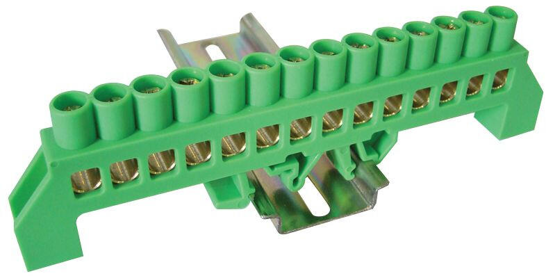 Szigetelt földelősín (N/PE), zöld 230/400V, 100A, 8×12mm, 14P, IP20 NPE-G8-14