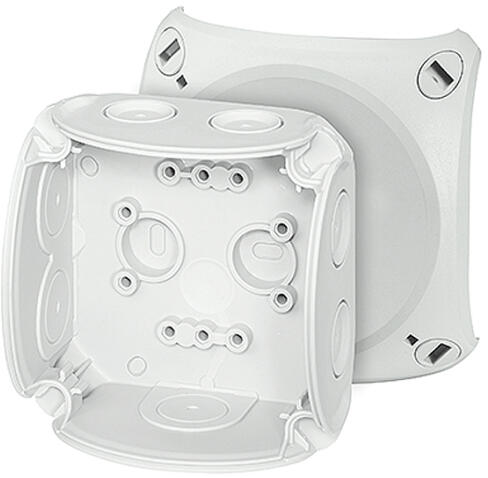 Forma: négyzetes Szerelési mód: fali/mennyezeti szerelés Hosszúság: 100 mm Sorolható: Nem Bevezetések száma: 6 Szekrényátvezetés típusa: kikönnyített Anyag: műanyag Fedélrögzítés: csavaros Plombálható: Nem Névleges szigetelőfeszültség Ui: 660 V Időjárásálló: Igen
