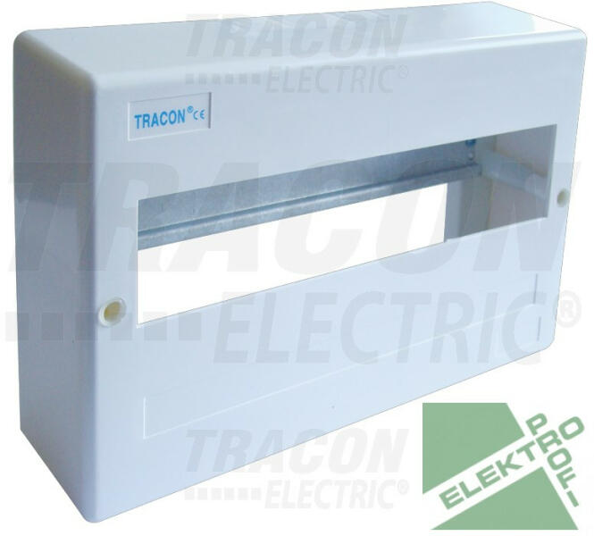 Tracon EDFK-12/1AN Falon kívüli elosztódoboz, ajtó nélkül, N/PE sínnel, 12 mod Falon kívüli elosztódoboz, ajtó nélkül, N/PE sínnel 1×12 modul, IP40, (H×W×D=160×260×65mm)